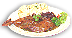 Rinderlendenbraten „Svickova" mit böhmischen Semmelknödeln unter anderem Enten- und Wildspezialitäten bis hin zum frischen gebratenen Zanderfilet und vieles mehr !